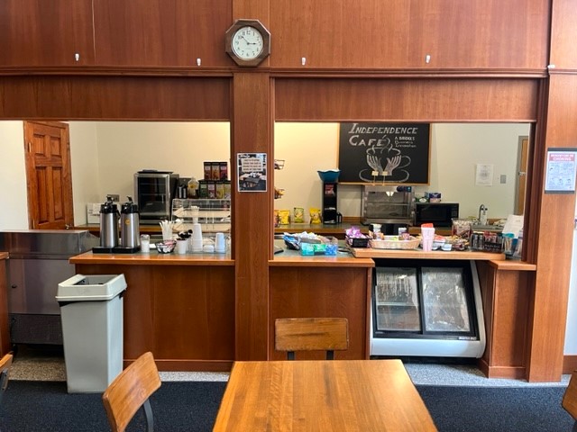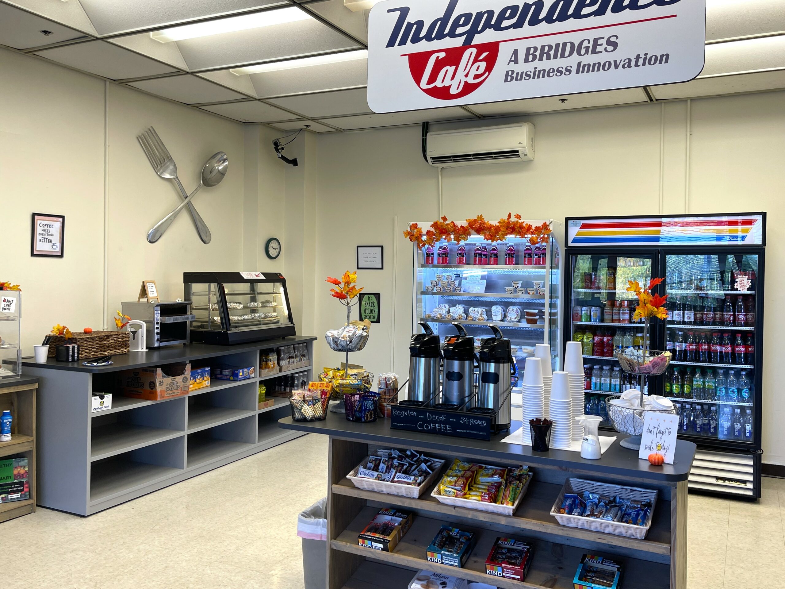 Staffed by veterans and people with disabilities, the Independence Café uses local vendors to offer coffee, tea, hot chocolate, potato chips, cold beverages and other convenience products.